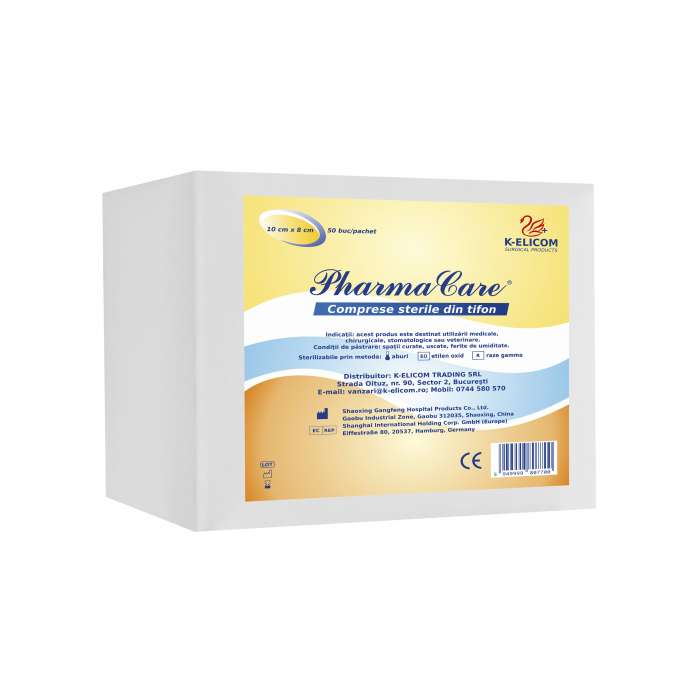 Compresele sterile din tifon 10cm x 8cm PharmaCare sunt din bumbac 100% și sunt hidrofile, având un grad ridicat de absorbție a lichidelor. Compresele sterile cu straturi multiple sunt utilizate pentru acoperirea rănilor și leziunilor la nivelul pielii, fiind o barieră contra infecțiilor.