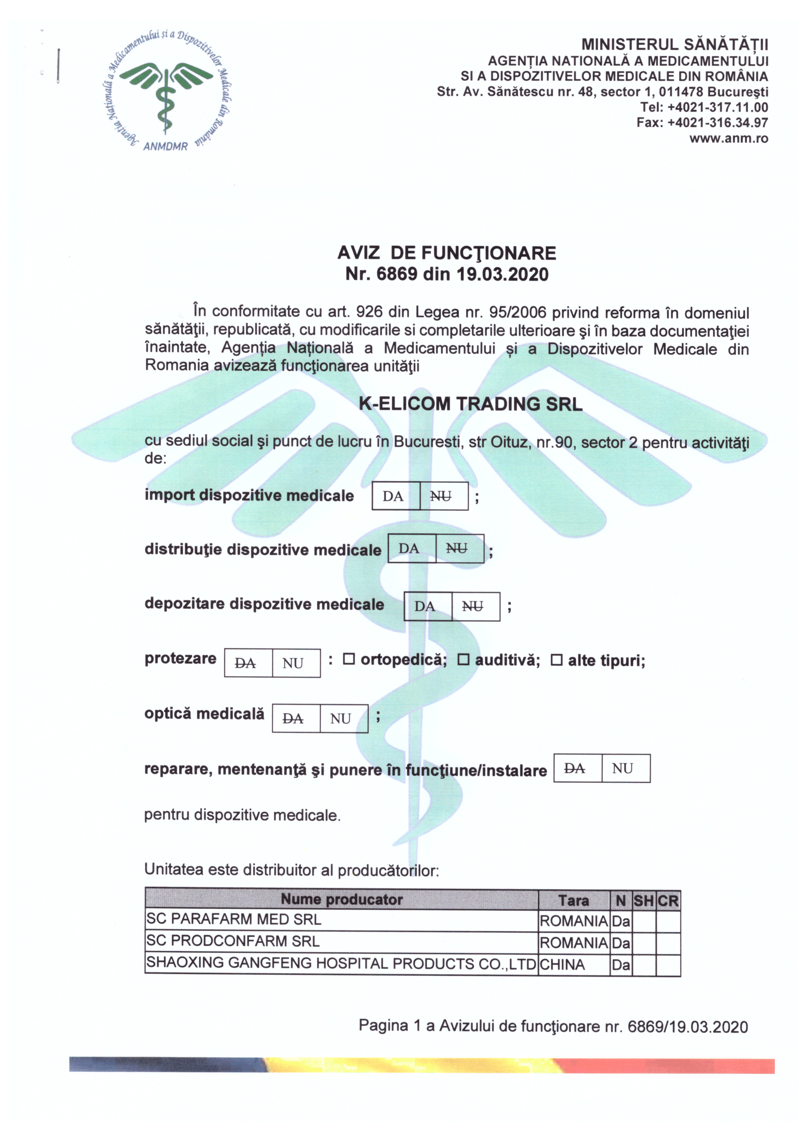 Import si comercializare dispozitive medicale de uz general si profesional -- tifon, fise si comprese de tifon, vata hidrofila medicinala, plasturi, lavete si campuri chirurgicale, bonete, incaltaminte de uz chirurgical si alte consumabile medicale