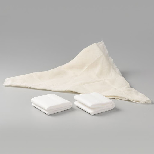 Triangulele sunt confectionate din cinci triunghiuri dreptunghice din tifon,suprapuse,avand capetele cu dimensiunea de 90cmx90cmx127cm x 5buc / pachet. Prin impaturiri repetate se obtine un ambalaj cu dimensiuni reduse,se leaga,se ambaleaza in hartie pergament prin impachetare si lipire,apoi se eticheteaza